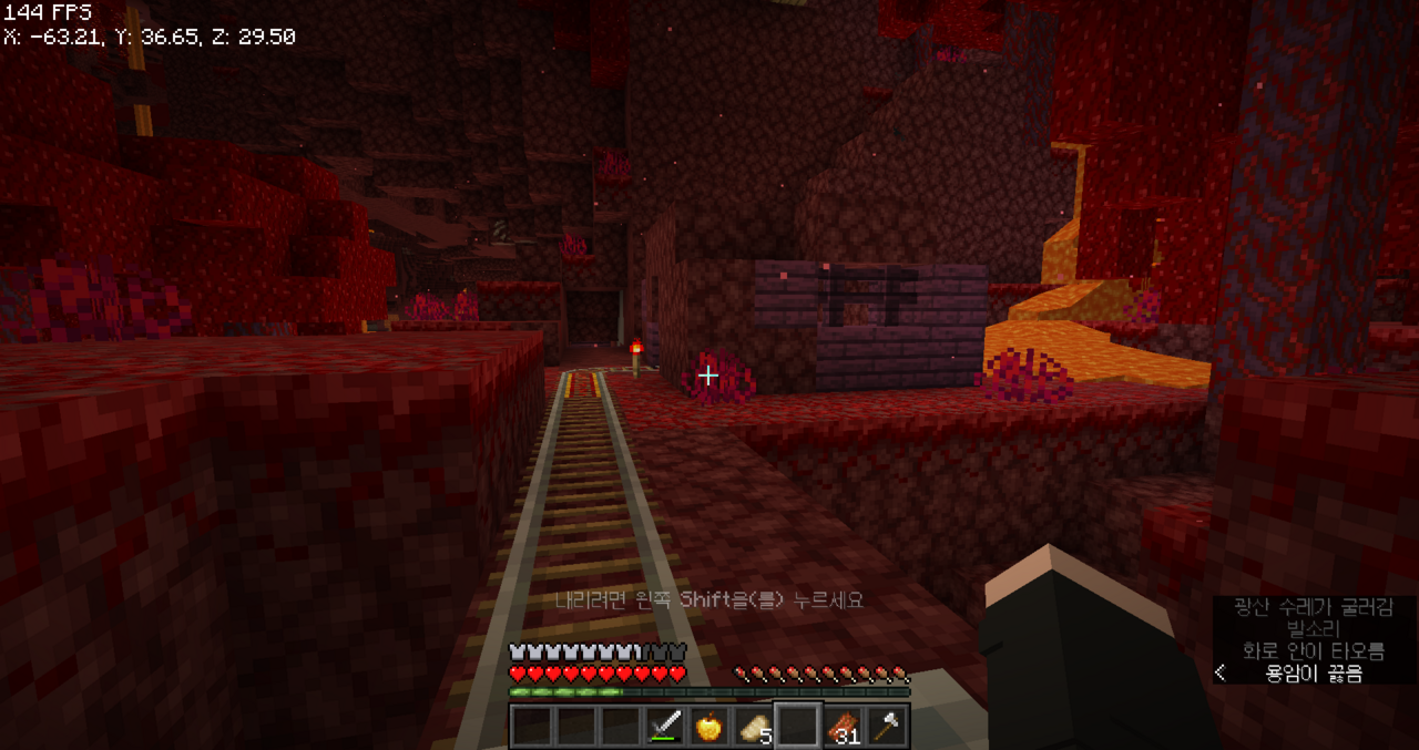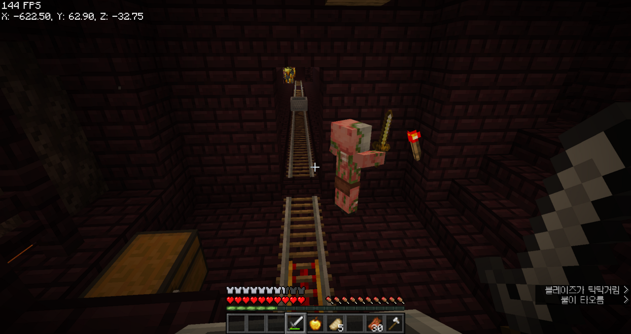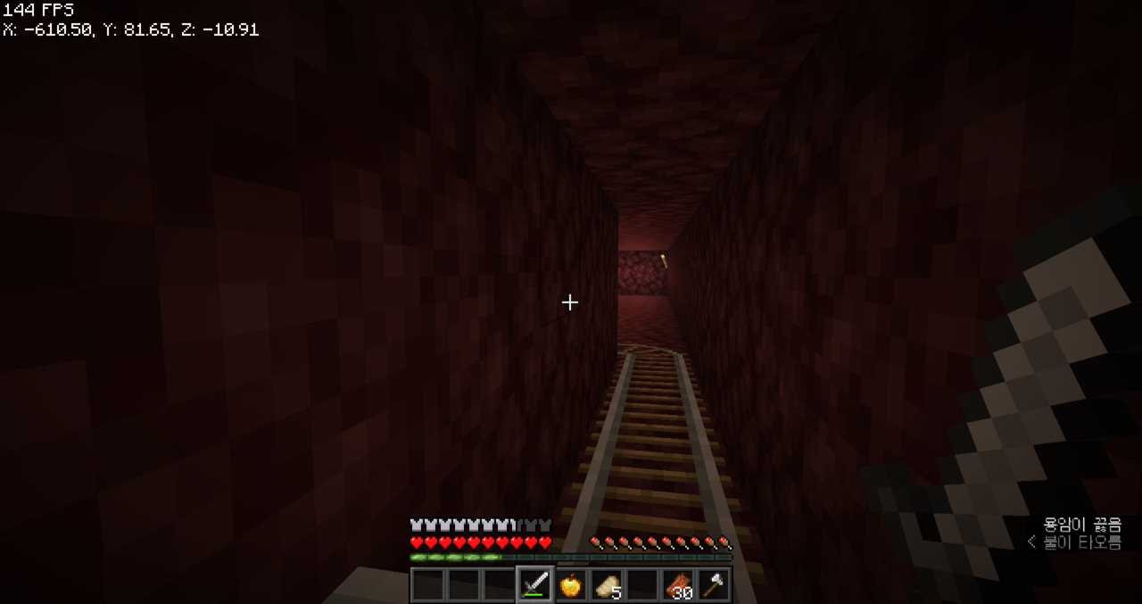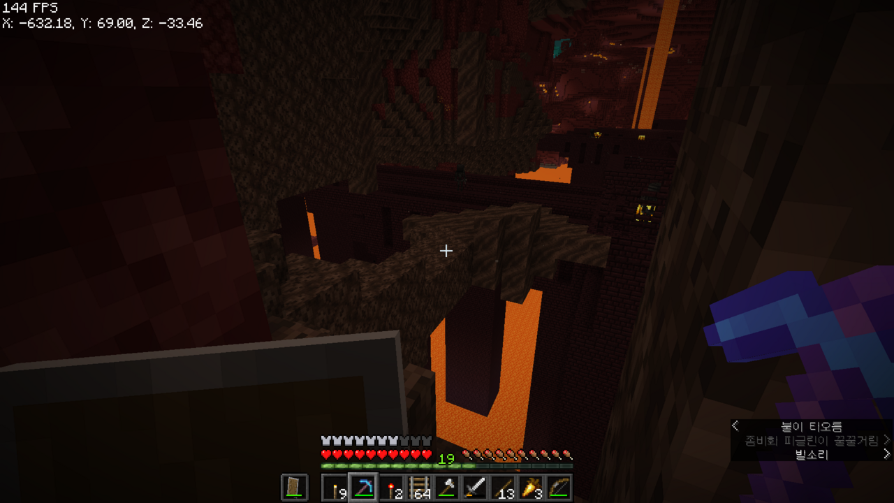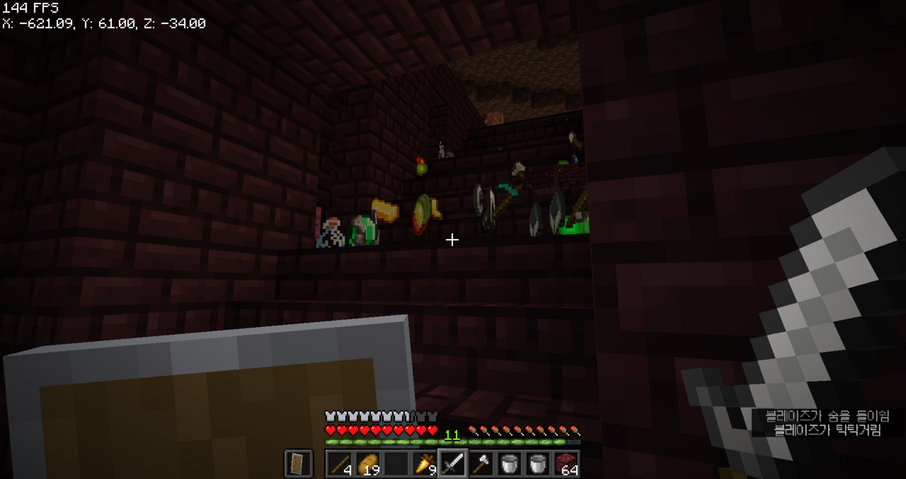 왼쪽으로는 보물들이 있는 네더 요새가 있었던 것 같아서 이쪽으로 길을 뚫어야겠다.