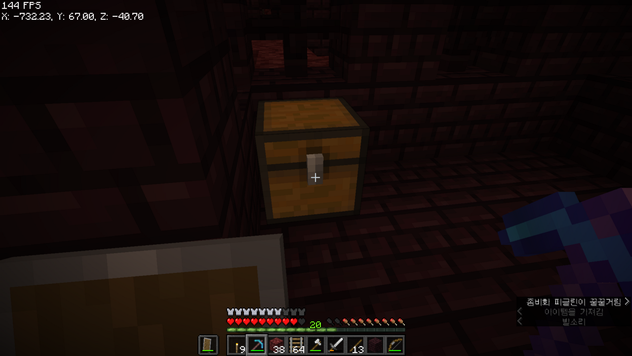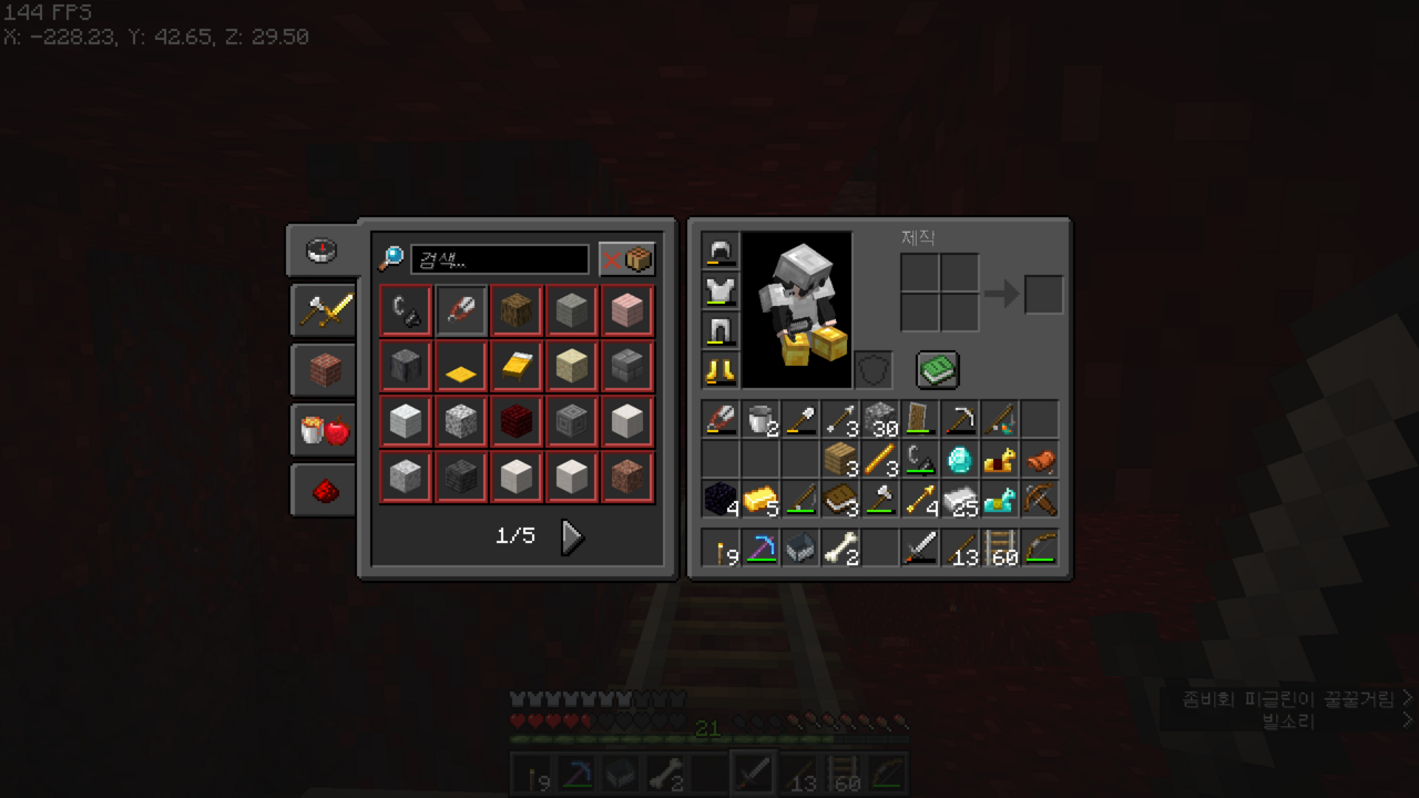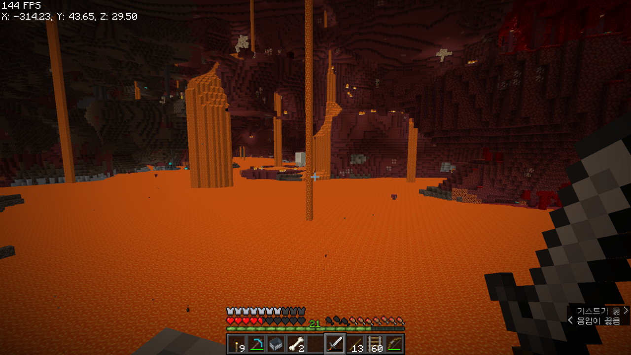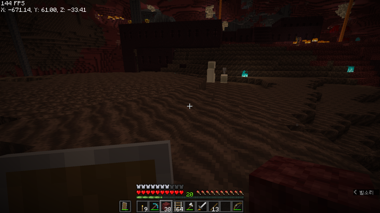 왼쪽으로는 보물들이 있는 네더 요새가 있었던 것 같아서 이쪽으로 길을 뚫어야겠다.