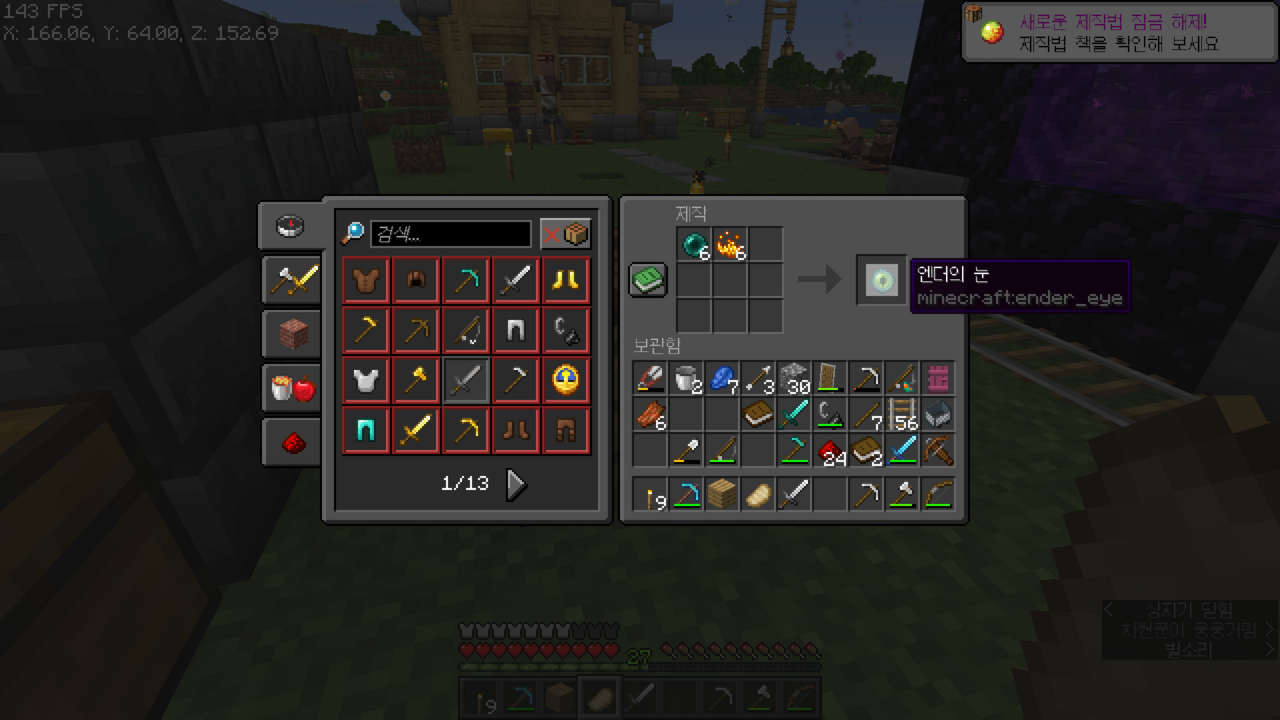 슬슬 엔더에 가기 위해 이렇게 엔더의 눈을 만들어줬다.