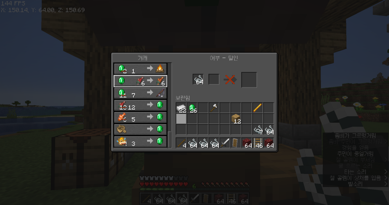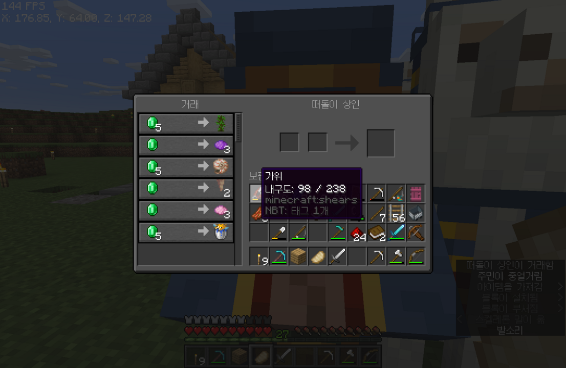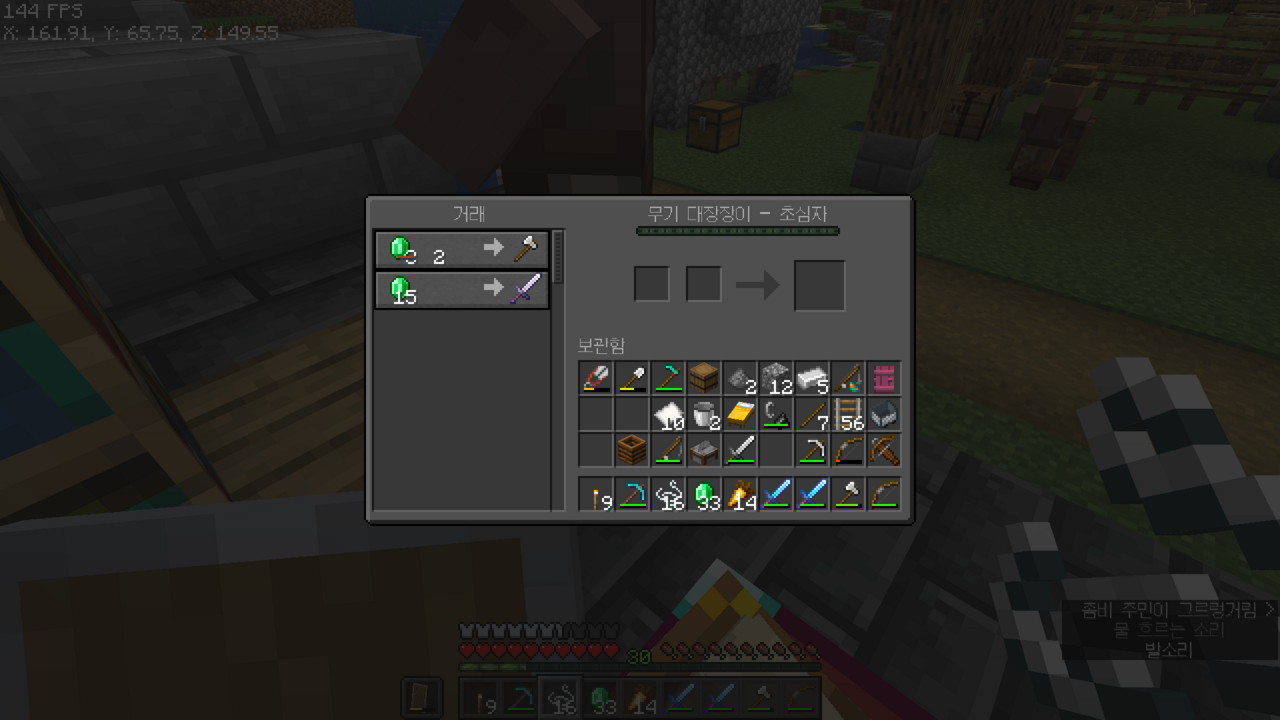 또 실이랑 에메랄드랑 바꾸고 장비를 만드는 중이다.