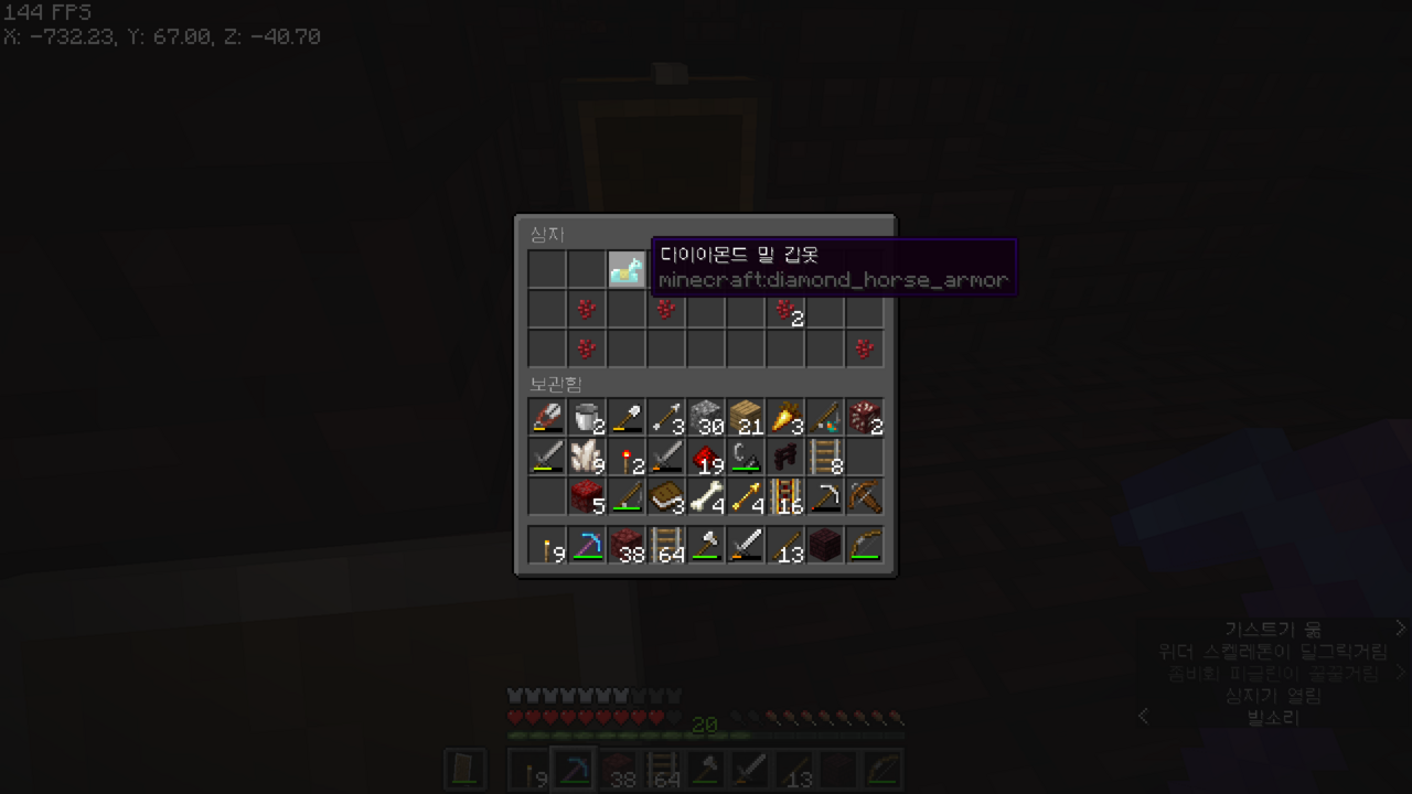 오! 다이아몬드 말 갑옷이랑 네더와트가 나왔다.