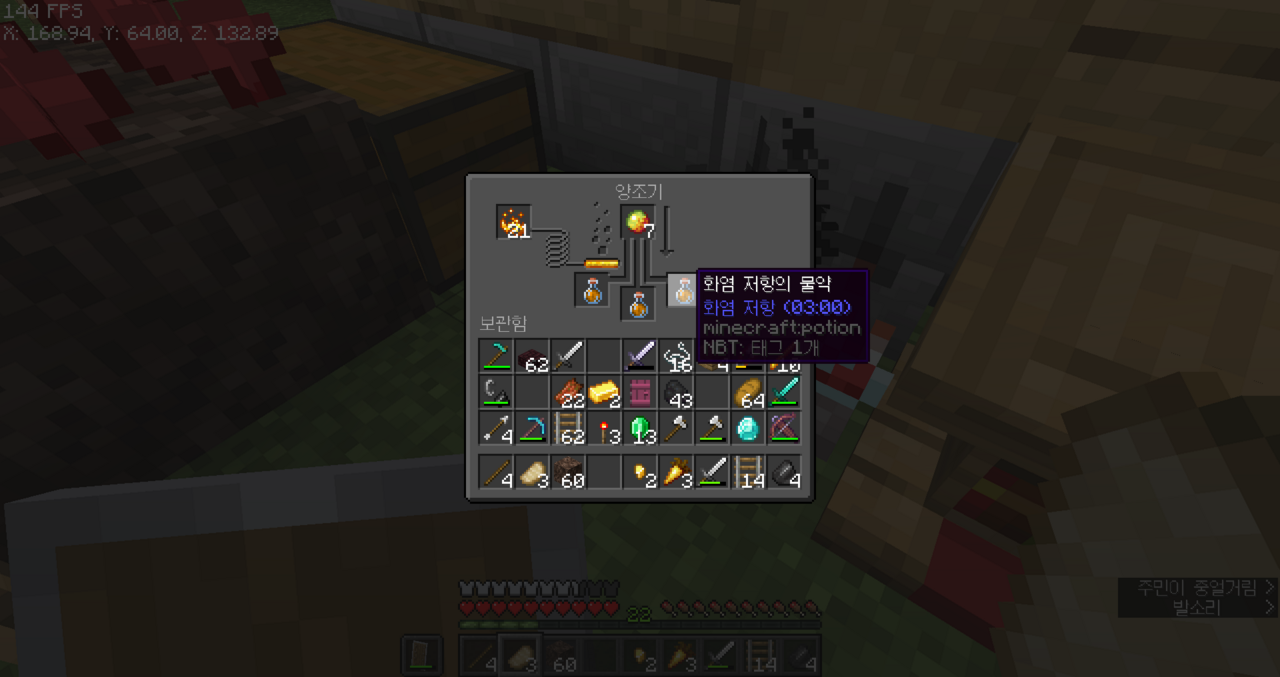 화염저항 물약 만들기 전에 물약 만들 수 있게 해놨다.