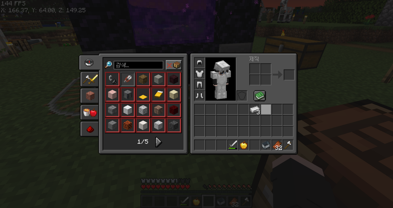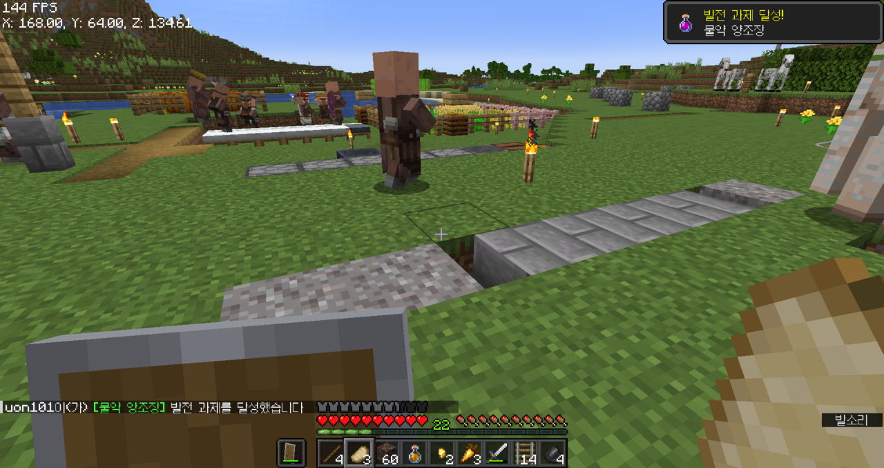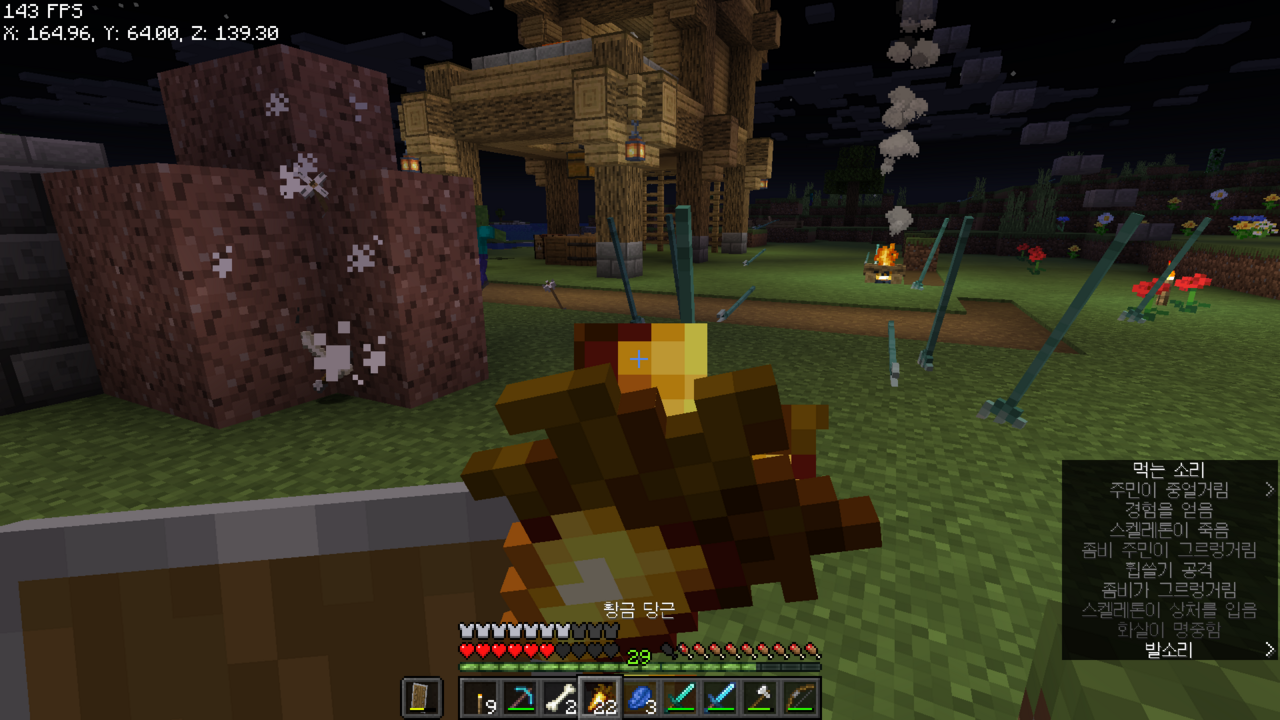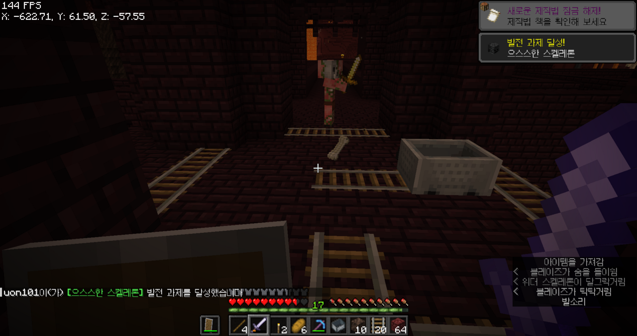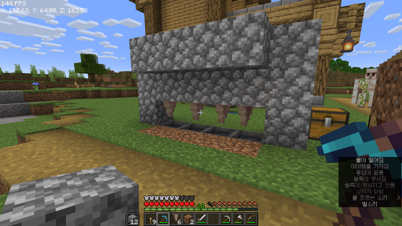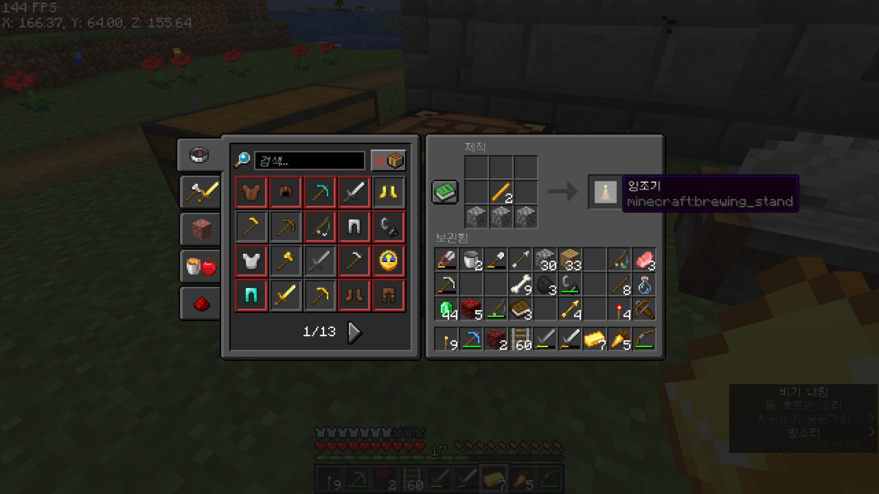 잠시 오버월드로 올라와서 휩쓸기 다이아 검을 만들었고