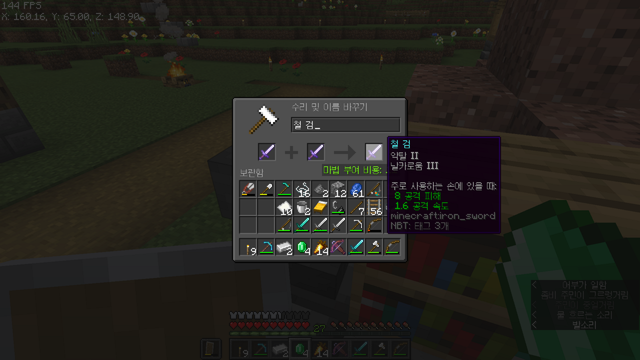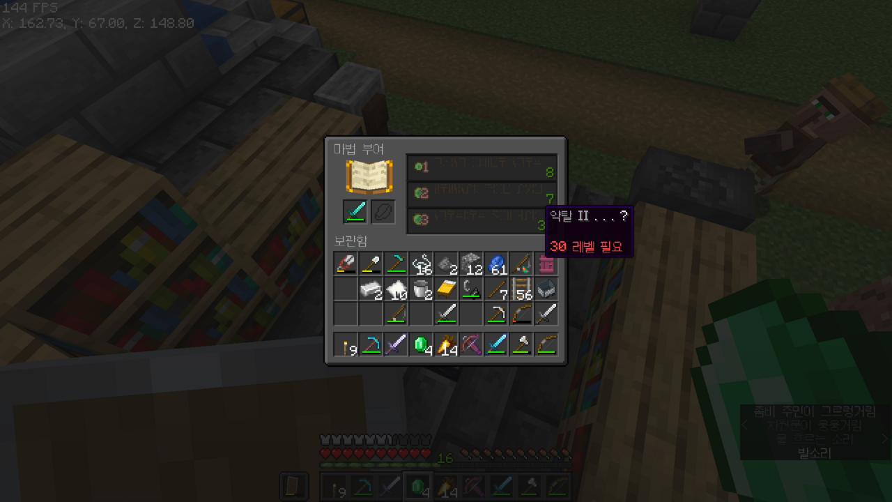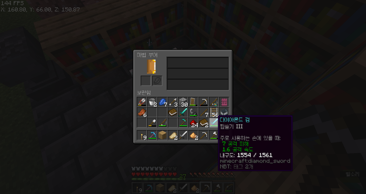 약탈2 만들고 나니까 다이아 검에 약탈2를 붙일 수 있댄다...
